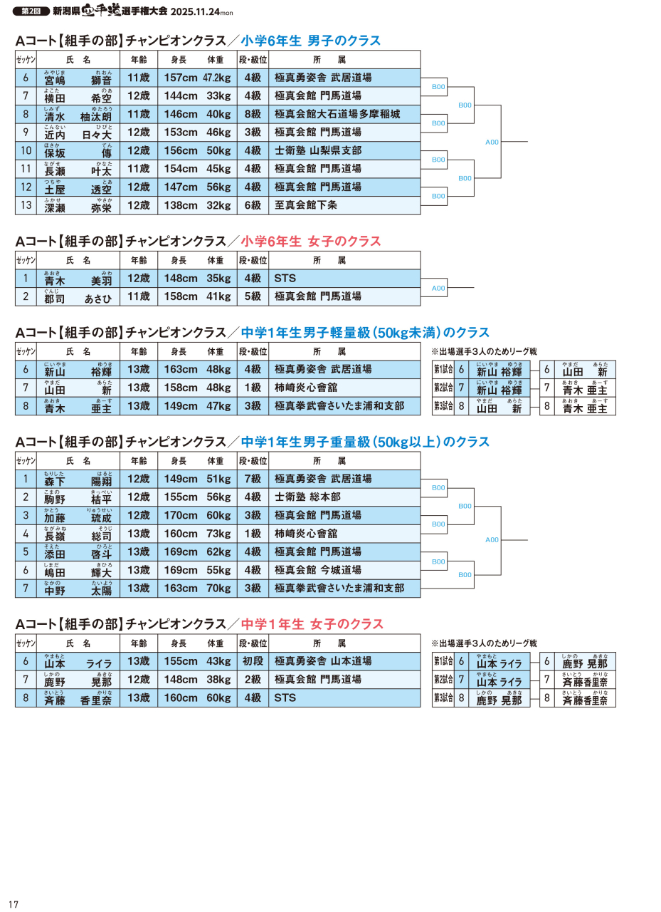 選手データに間違いがある場合は、11/17(月)12:00までにご連絡下さい。